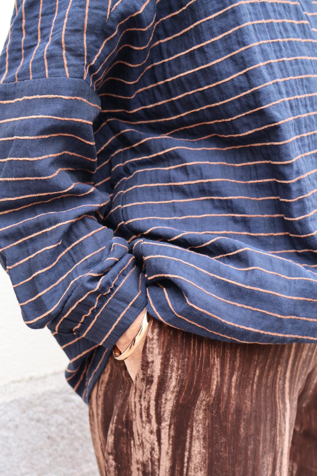 Pantalón de terciopelo con goma en la cintura y bolsillos.