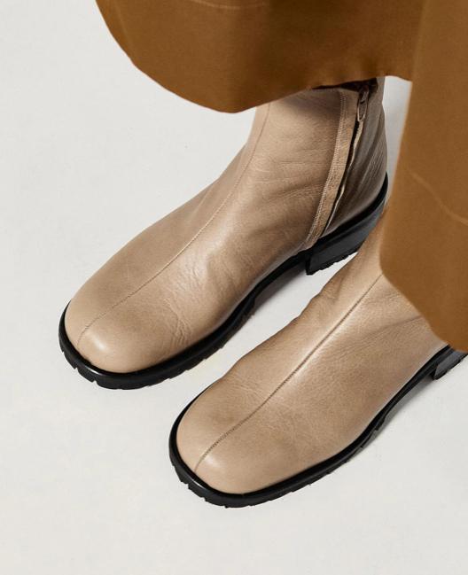 BINA es una bota con cremallera interior, perfecta para cada día. El corte es de piel ovina. Forro de piel vacuno. Puntera cuadrada. Piso de suela y goma rayada con cerco con doble cosido. La altura total es de 3,5 cm para mayor comodidad de tu espalda.