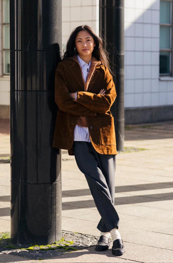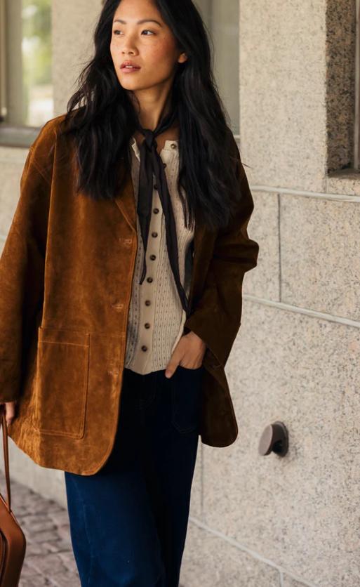 Una americana de piel con volumen y estructura. El tipo de prenda que transforma cualquier look con solo ponértela.