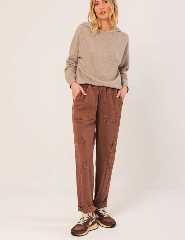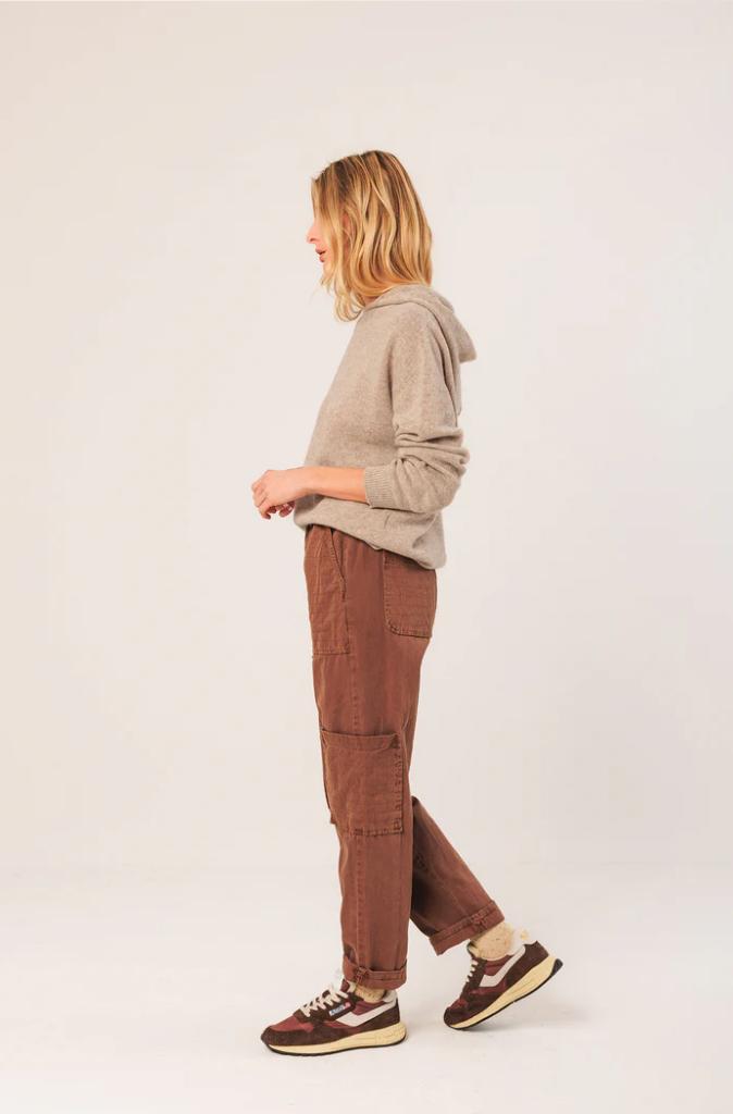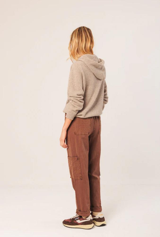 Nuestro jersey Amber con lana y cashmere de estilo sudadera está hecho en Italia. Tiene el cuello redondo con capucha, hombros caídos y fit relajado de silueta sport.
