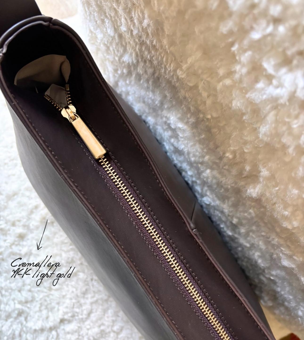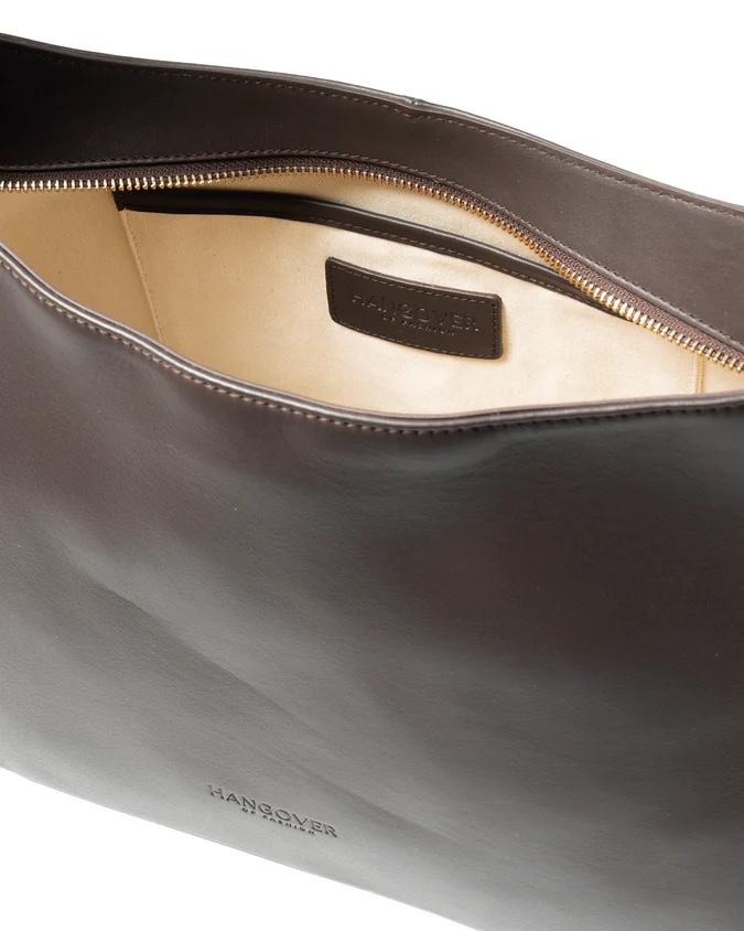 Materiales premium: piel de napa suave en color marrón chocolate y forro de algodón orgánico.