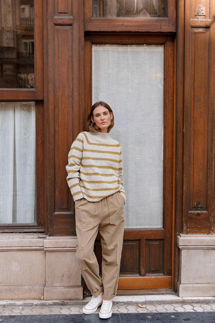 Un jersey de lana muy gustoso con diseño a rayas que aporta un aire casual pero cuidado. Ideal para los días de frío en los que quieres ir cómoda y con estilo.