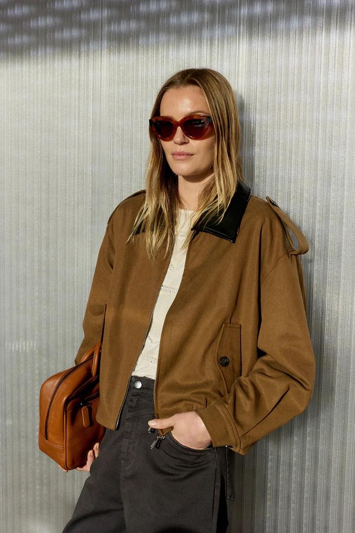 Esta cazadora de algodón y lyocell te solucionará el look en esos días frescos de verano. De hombro caído, manga larga y cuello desmontable. Tiene un volumen tipo bomber gracias a su ajuste en el bajo.