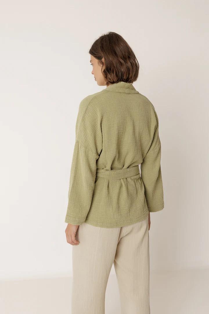 • Escote cruzado con cuello kimono. • Cinturón extraíble para ajustar. • Tejido en algodón de doble gasa. • Fit oversize: Diseñado con un fit más grande de lo habitual. • Medidas sobre talla S en plano: Largo desde hombro 70cm. Ancho de pecho 58cm. Ancho de bajo 64cm. Tallaje: +1 cm de largo por talla y +2cm en contornos.
