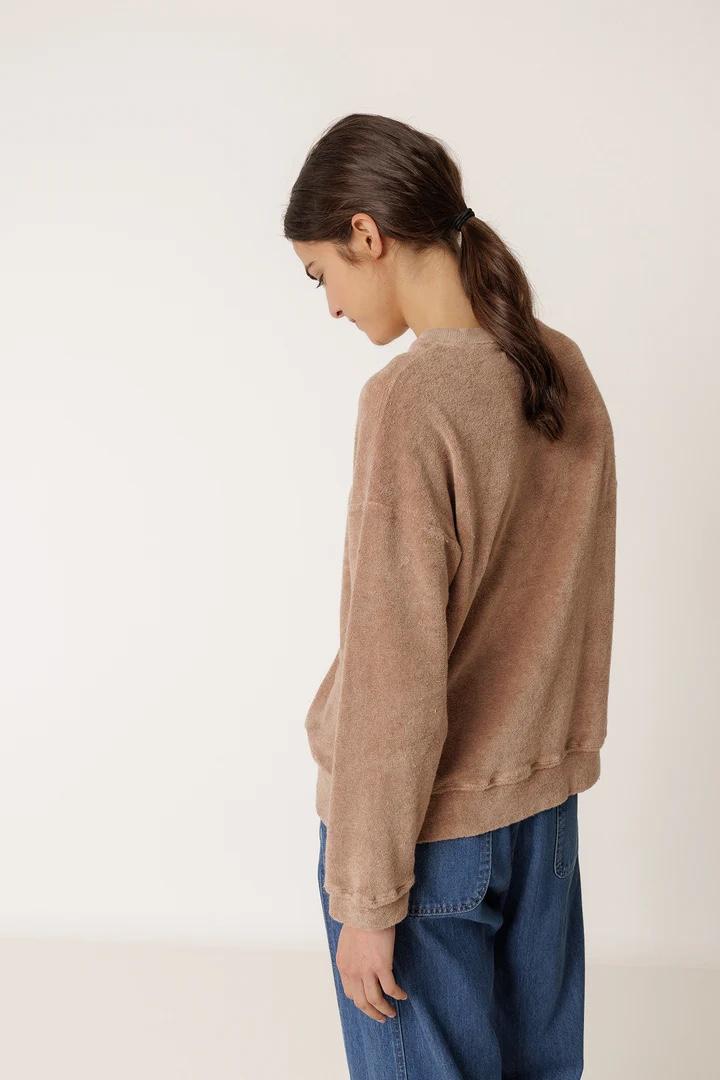 Con un diseño moderno y desenfadado, la sudadera de rizo LARA es un básico imprescindible. Sus hombros caídos y las aberturas laterales brindan libertad de movimiento. Su box fit, cuadrado y corto, garantiza un ajuste cómodo y estiloso.