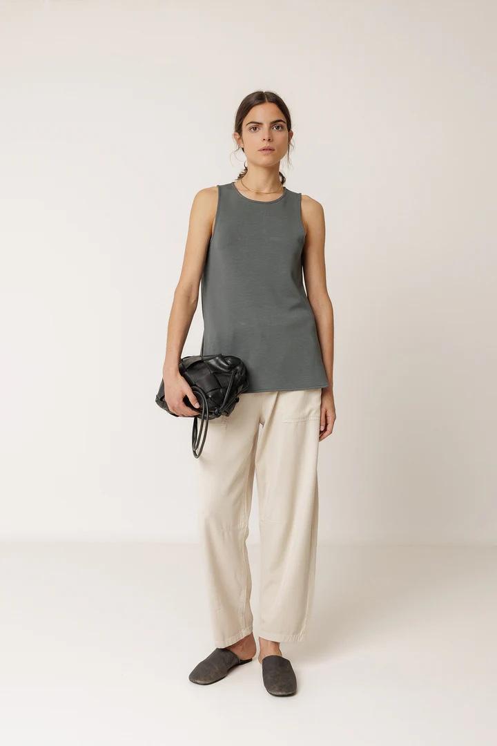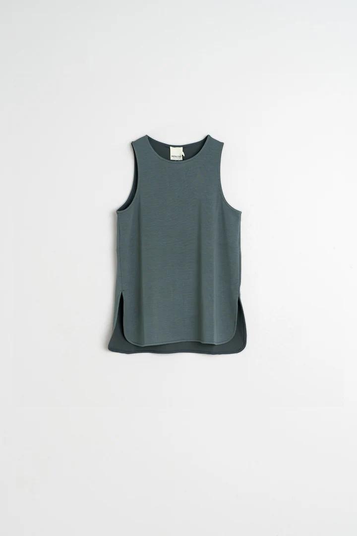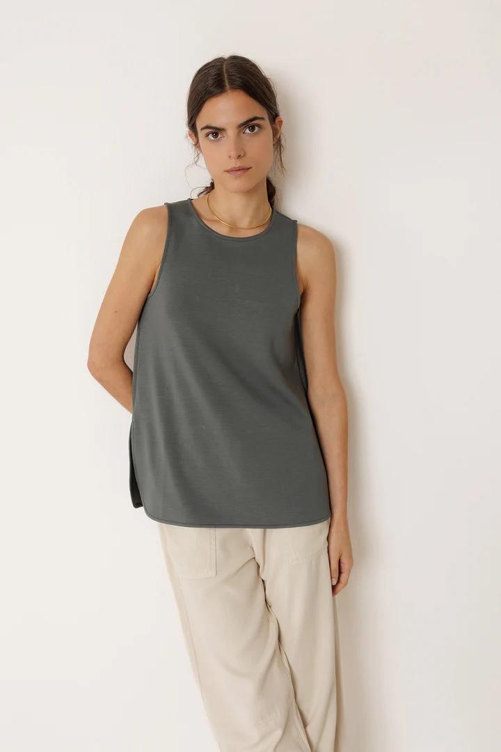 Camiseta de cuello redondo, tirante ancho y aberturas laterales. Perfecta para combinar con el pantalón de la misma serie.