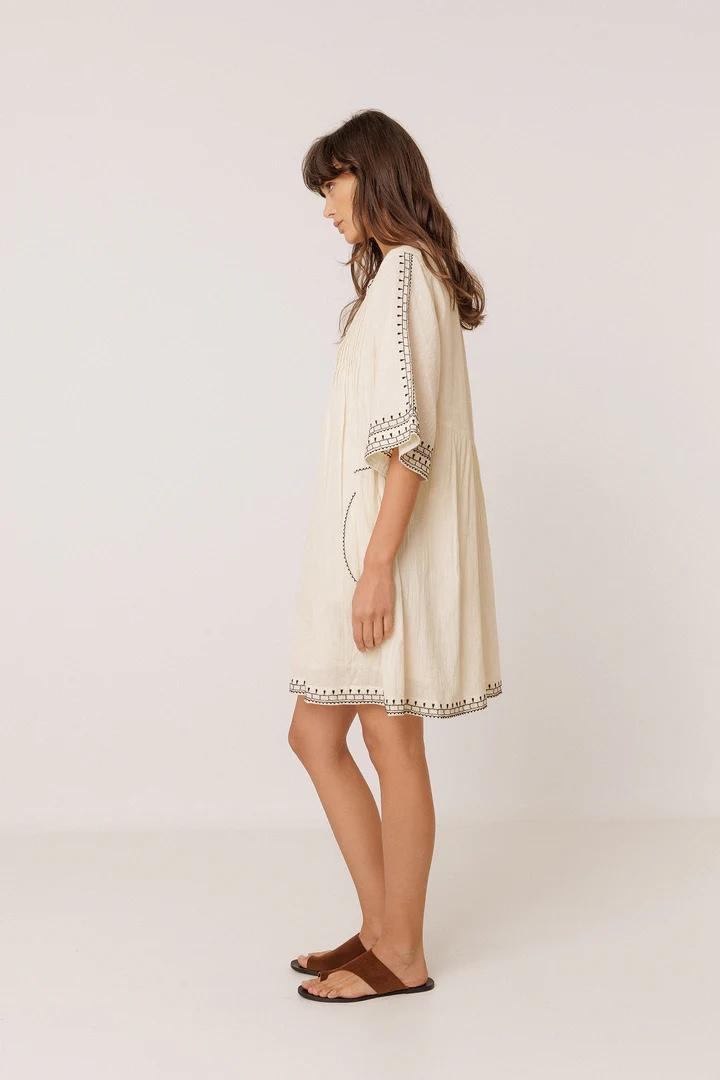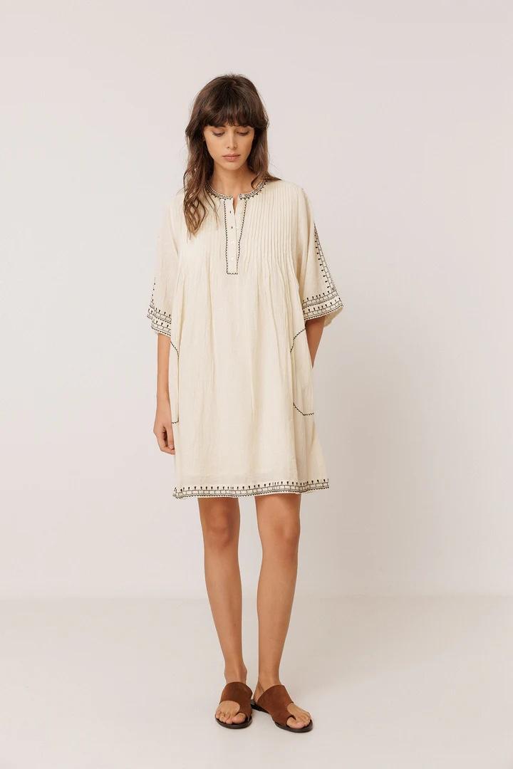 Vestido de algodón ligero y bordado decorativo. Una prenda cómoda para el día a día.