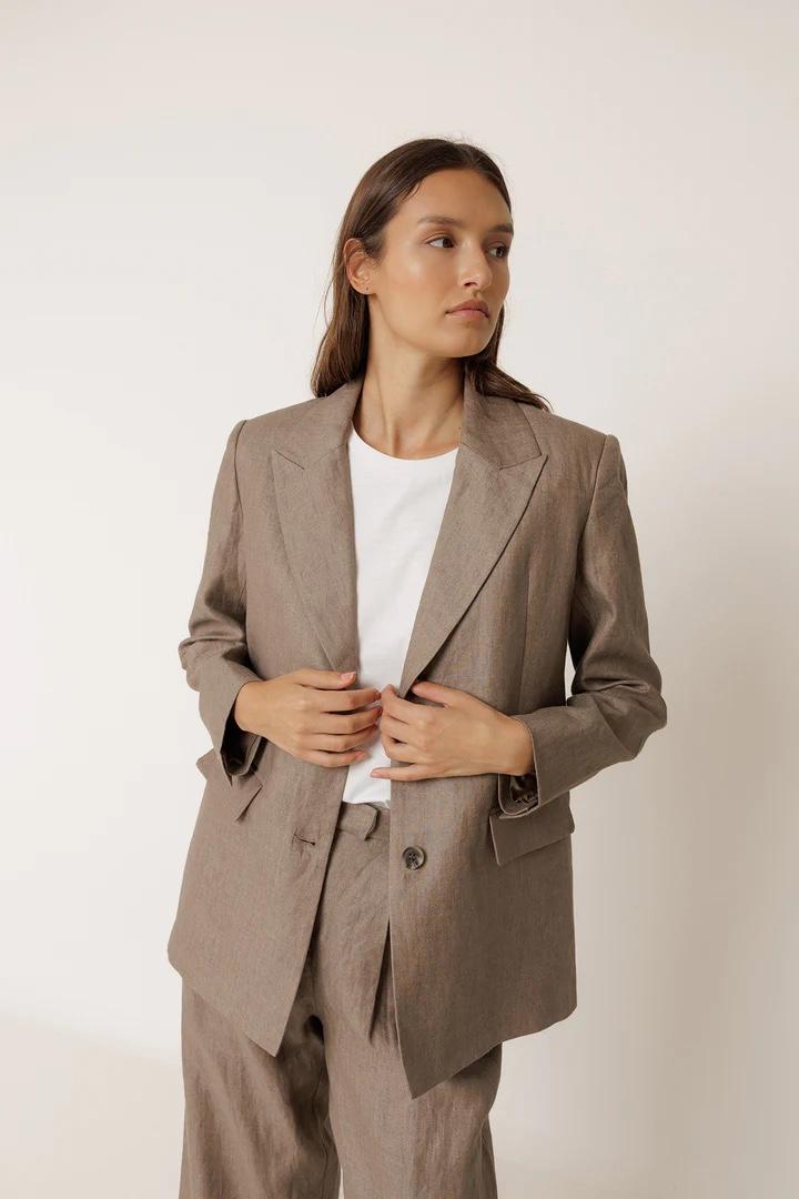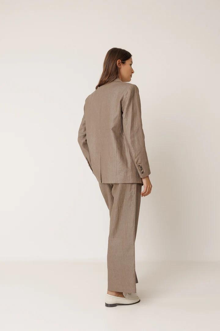 Americana de corte recto en 100% lino de estilo masculino con hombrera. Una silueta estructurada con un tejido natural y fresco.¡Póntelo con el pantalón de la misma serie para un total look.