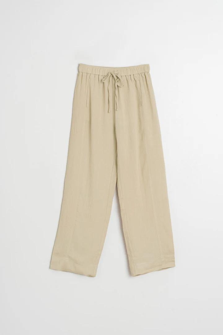 Un pantalón cómodo y fluido, ideal para llevar tanto en looks relajados como en conjuntos más cuidados. Su cintura ajustable y la caída suave del tejido lo hacen perfecto para los días más ajetreados.