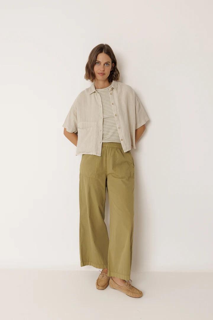• Hombro caído y manga corta. • Cierre frontal abotonado y bolsillo de parche. • Pequeñas aberturas laterales. • Tejido 100% lino. • Box fit: Diseñado con un corte cuadrado, ancho y corto. • Medidas sobre talla S en plano: Largo desde hombro 59cm. Ancho de pecho 59cm. Ancho de bajo 59cm. Tallaje: +1 cm de largo por talla y +2cm en contornos.