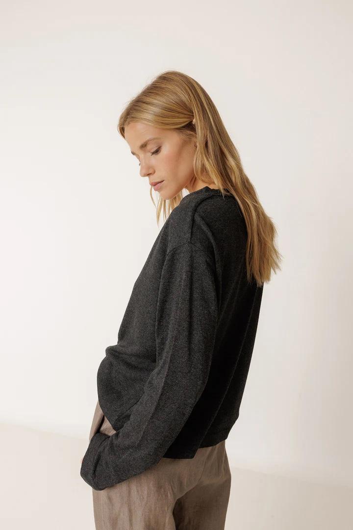 • Hombro ligeramente caído y manga larga. • Escote en V con efecto de doble prenda. • Tejido de punto en viscosa. • Fit relajado: Diseñado para que siente ligeramente holgado • Medidas sobre talla S en plano: Largo desde hombro 57cm. Ancho de pecho 52cm. Ancho de bajo 53,5cm. Tallaje: +1 cm de largo por talla y +2cm en contornos.