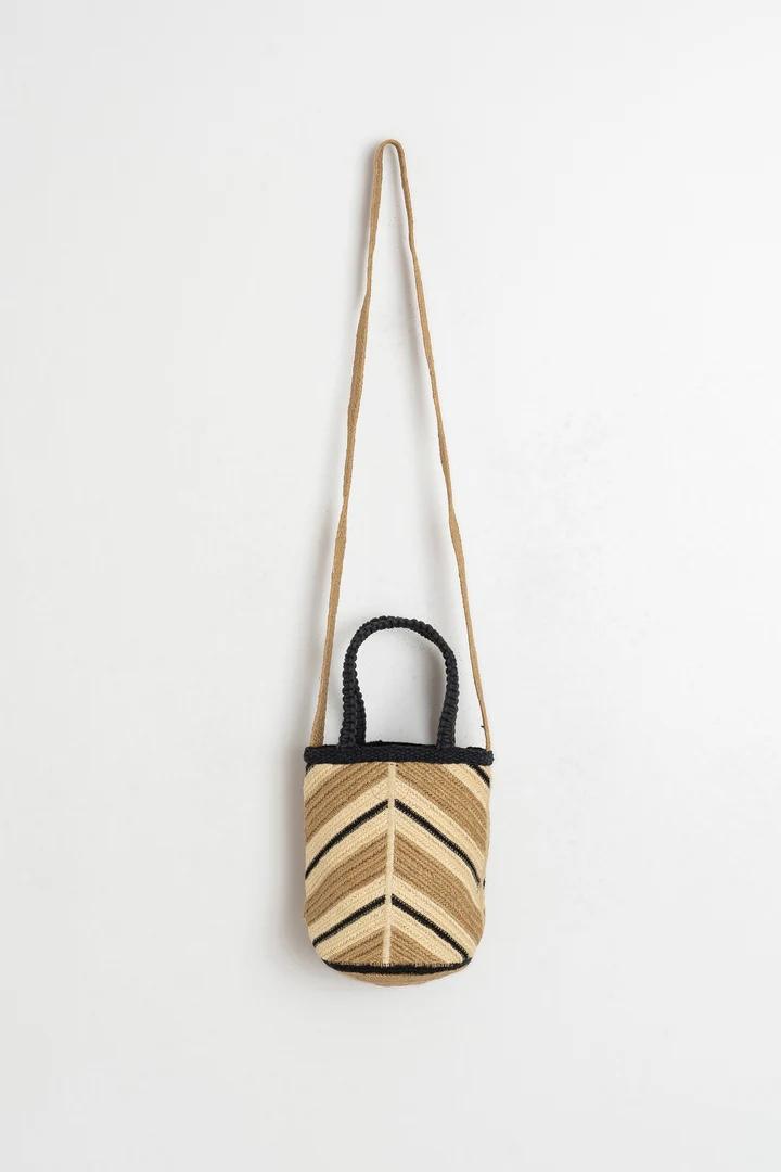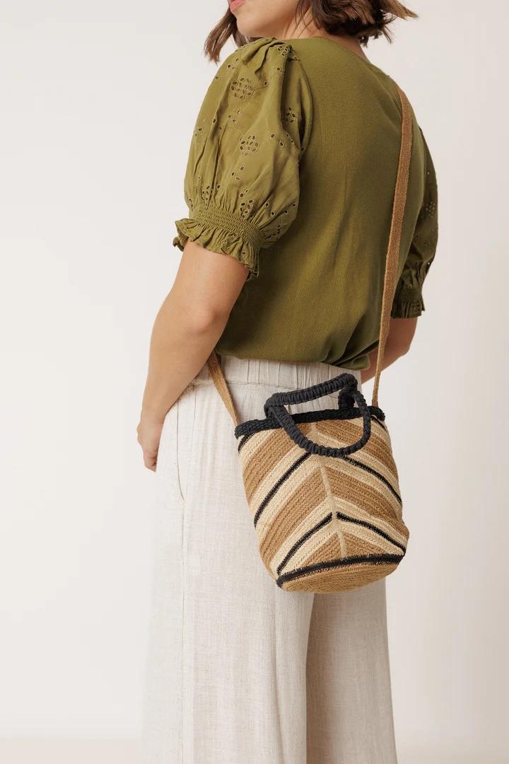 Mini bolso con doble asa de mano. Además, cuenta con asa bandolera para colgar. Su diseño de espiga hace que cualquier look tenga un aire distinto, siendo además fácil de combinar con cualquier look veraniego:)