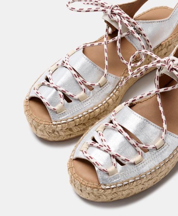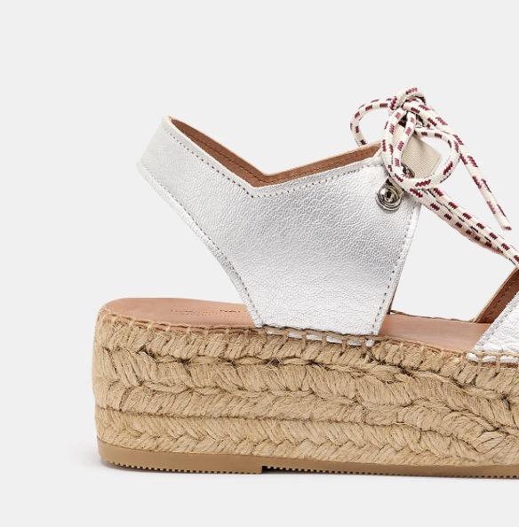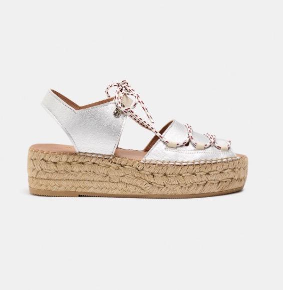 Cima es un clásico de Naguisa, una alpargata inspirada en el calzado de montaña. Los cortes son de piel ovina metalizada y los cordones de poliéster en contraste. Forro de piel. La planta es acolchada con foam y forrada de piel vacuna natural para dejar transpirar mejor tu pie. El piso está hecho con doble trenza de yute, una pequeña cuña para mayor comodidad y patín de goma antideslizante. La altura total es de 5 cm. Fabricado en España.